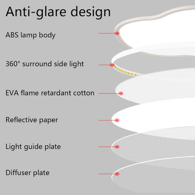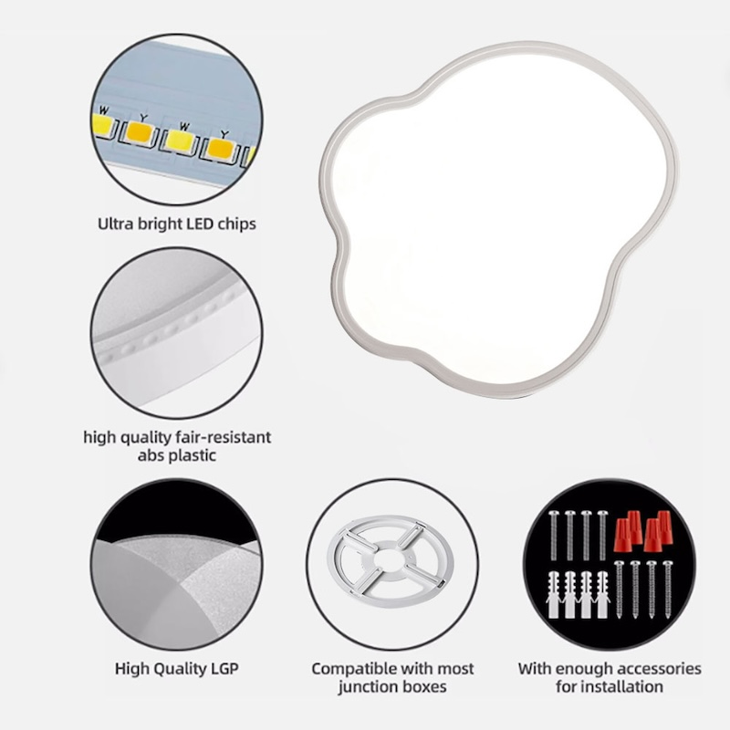 LED light source: Ceiling light with built-in high-performance LED chip; Lower energy consumption; High color rendering index; Make the illuminated object appear closer to its true color; Simultaneously providing stable light that is not easily flickering; LED ceiling lights do not require bulbs; Long lifespan of up to 45000 hours; Longer lifespan It can be installed in bedrooms, children's rooms, corridors, entrances, offices, study rooms, reading rooms, stairs, porches, etc., making it a good choice for space lightingility, which can provide you with stable lighting for a long time.
