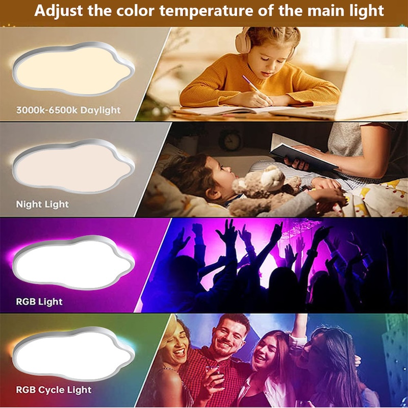 RGB cloud ceiling lamp not only has practical lighting functions, but also adds more fun and beauty to the interior through.